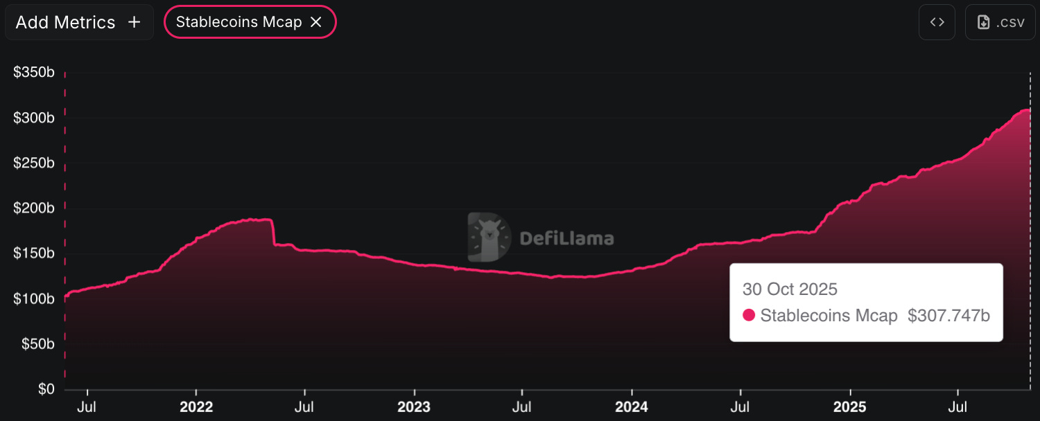 穩定幣法案(GENIUS Act)帶來的影響正極速擴大中1,穩定幣市值脫離市場情緒,連連創新高,已經達到 $307B 美金:華爾街、FinTech、資產管理公司都在積極進場穩定幣支付佈局(如 Stripe、Visa、Paypal、BlackRock…etc)。
