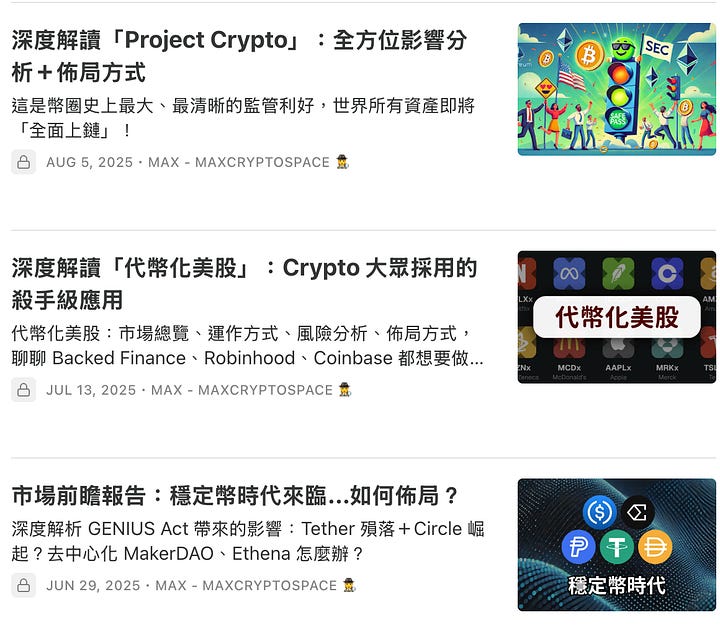 我過往的每月 AMA 就是在做這些重要資訊的統整,讓你用最有效率的方式吸收完真正影響市場的新聞,省下時間去做別的事 — 現在則是用「MaxDigest 系列」來替代