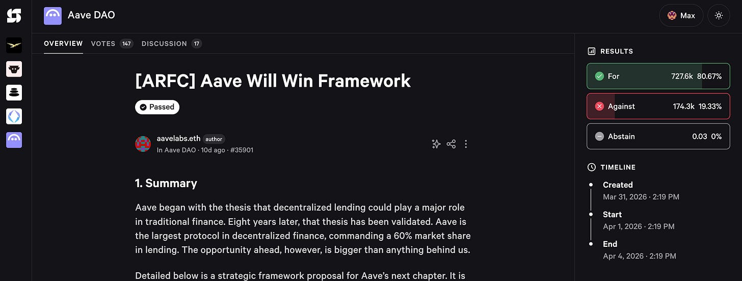 如果你是自己在治理平台上挖到的提案、在鏈上數據裡發現的趨勢(新聞都還沒報) — 那你就比大多數人早一步,畢竟沒什麼人會注意治理平台(演算法也不會推給你)