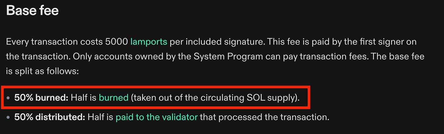 燒毀機制比較常見的例子是 Layer1 區塊鏈,以 Solana 來說,每一筆轉帳的費用(Gas Fees)會有 50% 被燒毀,幫助 $SOL 代幣持有人捕獲這一條區塊鏈的價值;Ethereum 也是同理,只不過是靠著 EIP-1559 來計算,沒有特定的比例。