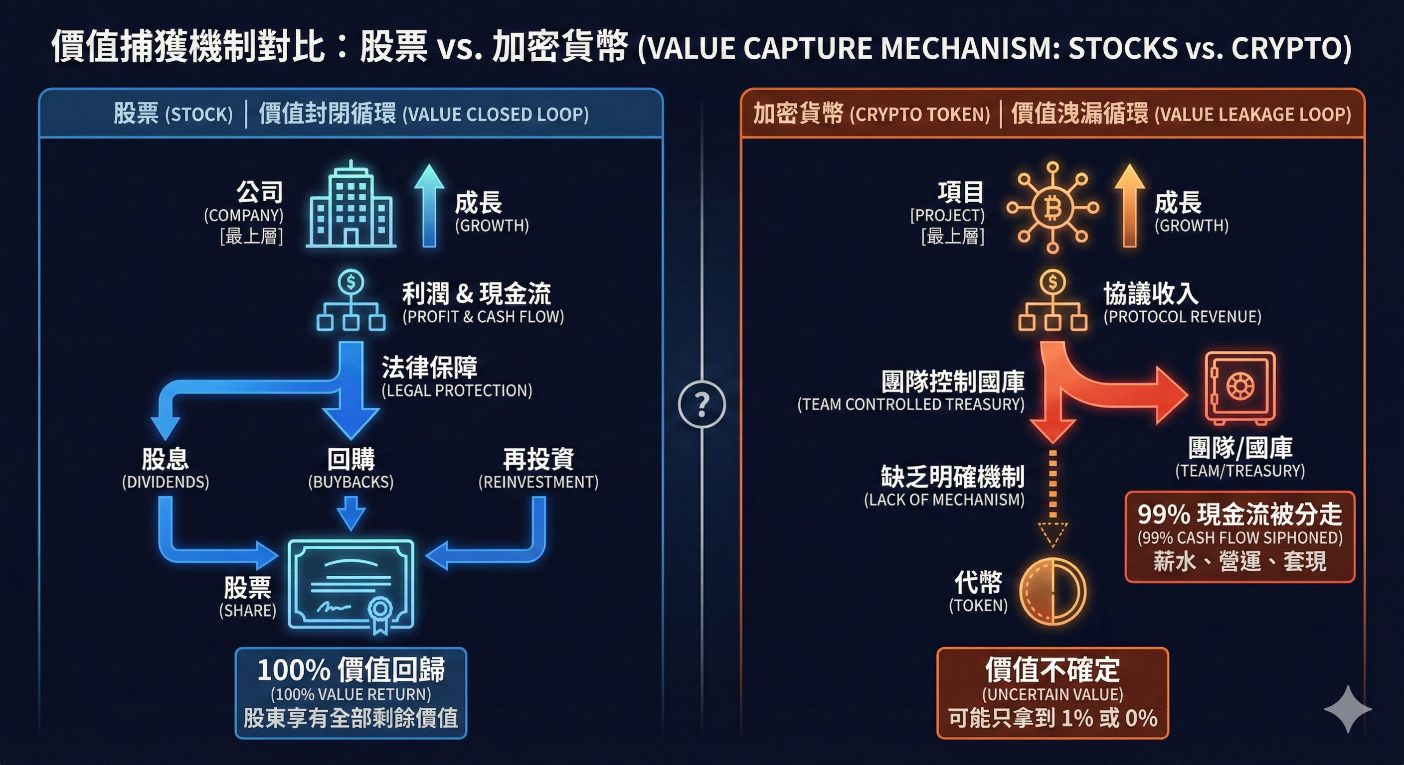 「價值捕獲」是最多加密投資人擁有的誤區,他們很容易把「股票投資」的思維帶入,認為只要項目做得好,那項目發行的代幣應該也會表現得很不錯 — 但真的是這樣嗎?